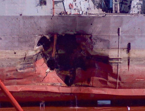 The guided missile destroyer USS Cole (DDG-67) was commissioned on June 8, 1996, and was named in honor of SGT Darrell Cole, USMC, who died during the Battle of Iwo Jima during World War II and was posthumously awarded the Medal of Honor.. In August 2000 Cole was deployed from her home port of Norfolk, Virginia, to the Mediterranean. On October 12, 2000, Cole was refueling while docked at Adem, Yemen, when two al-Qaeda suicide terrorists brought an inflatable Zodiac-type speedboat alongside the port side amidships, and detonated their lethal cargo. Subsequent extensive investigation conducted by the FBI and NCIS determined the bomb contained over 1,000 pounds of C4 explosives. The explosion blew a 40-foot wide hole at the waterline in Cole but the crew’s valiant damage control efforts saved the ship from sinking. In addition to the two terrorist, 17 members of Cole’s crew died in the attack and 37 of their shipmates sustained wounds, many of whom were transported to Germany for hospital treatment and recovery. At the time of this attack the rules of engagement prohibited U.S. forces from firing at suspected threats unless they had been fired on. As a result of the Cole attack the Navy enhanced global force protection training during crucial transits, and sailors qualified to fire M60 and Browning M2 .50 caliber machine guns are now permitted to defend against assaults by low-slow flying aircraft and small boats. The Cole attack was the deadliest against a U.S. naval vessel since an Iraqi attack on the USS Stark (FFG-31) on May 17, 1987, during the Iran-Iraq War. Two of the masterminds of the Cole attack were later killed in separate U.S. airstrikes and a third key figure in the plot is in U.S. custody.