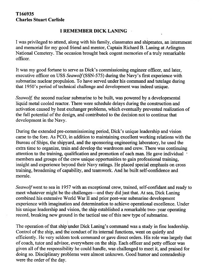 Submitted by CAPT Richard J. Laulor, USNR (Ret.)
