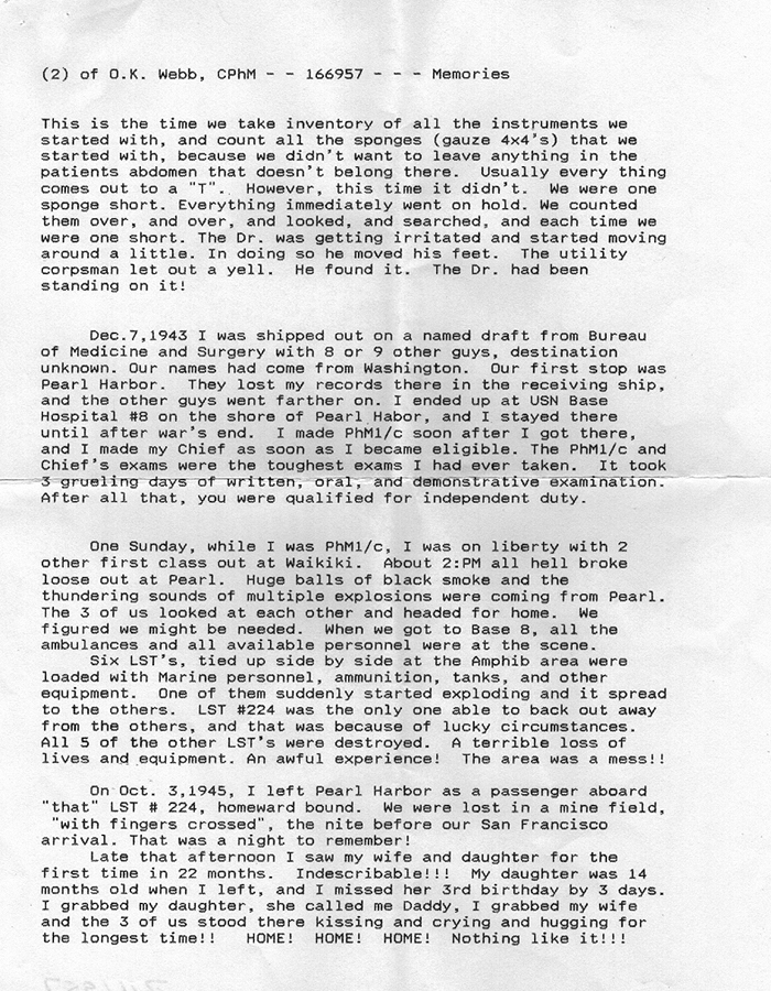We then sailed for Pearl Harbor on the island of Oahu, Hawaii. Heading south, south-west, we soon found ourselves sunning on deck during lunch and on weekends. In the ensuing days we were approaching the inland waterways of Pearl Harbor. The colorful florals with the trimmed landscapes and swaying palms, was a prelude to an “aloha” welcome. As we approached our ships moorings, there across the way solemnly rests a memorial over the sunken battleship USS Arizona, where over eight hundred of her crew remain entombed. After a moment of silence the ships crew prepared for mooring. Soon after our arrival we were running barefoot in the warm sands of Waikiki Beach. After a few days sight-seeing in our dress whites and having fun in the sun, we departed with a “lei” wreath and fond memories. On our return from Korea we’ll visit Pearl Harbor once again before returning to the states. Years later by conveyance of the Navy and Federal Service, I’ll return twice more to Pearl Harbor and the picturesque island of Oahu.