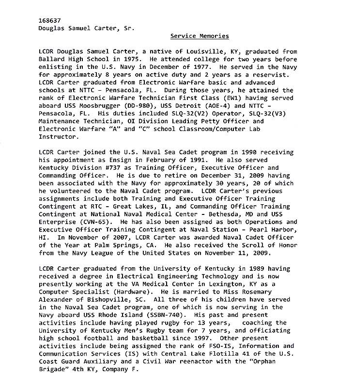 Submitted by CDR Roy A. Mosteller, USNR (Ret)
