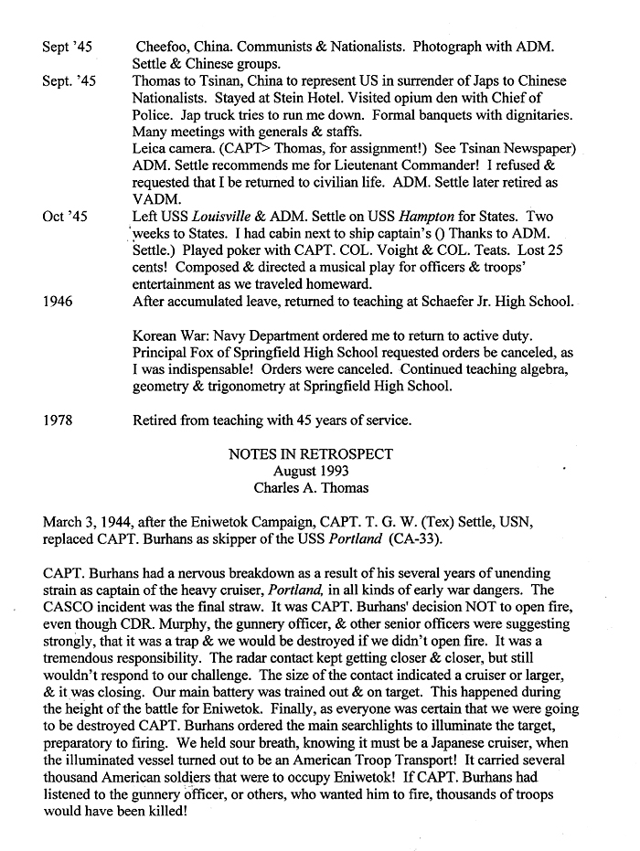He returned to active duty as CO, USS Pelias AS-14 with PACRESFLT, then as XO, USS Nereus AS-17. His next assignment was as COMSUBDIV 32, then as a student, Armed Forces Staff College, followed by Officer in Charge, Sub School, New London, and then back to sea as CO, USS Sperry AS-12. He completed his career as a student, Naval War College and then duty in Washington D.C., retiring as a Rear Admiral in 1957.